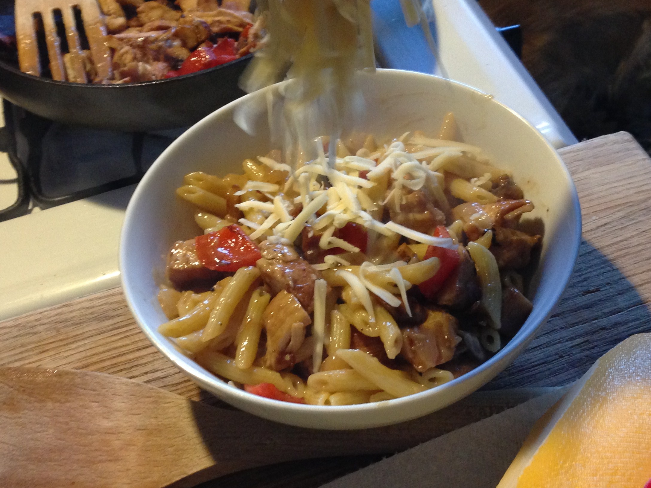 It didn’t take long for T to realize that we could duplicate Noodles & Co‘s Penne Pasta with Chicken recipe for a lot (a LOT) less than indulging at Noodles. Feeding a family of 6 meant that duplicating this recipe was important to staying within our food budget.