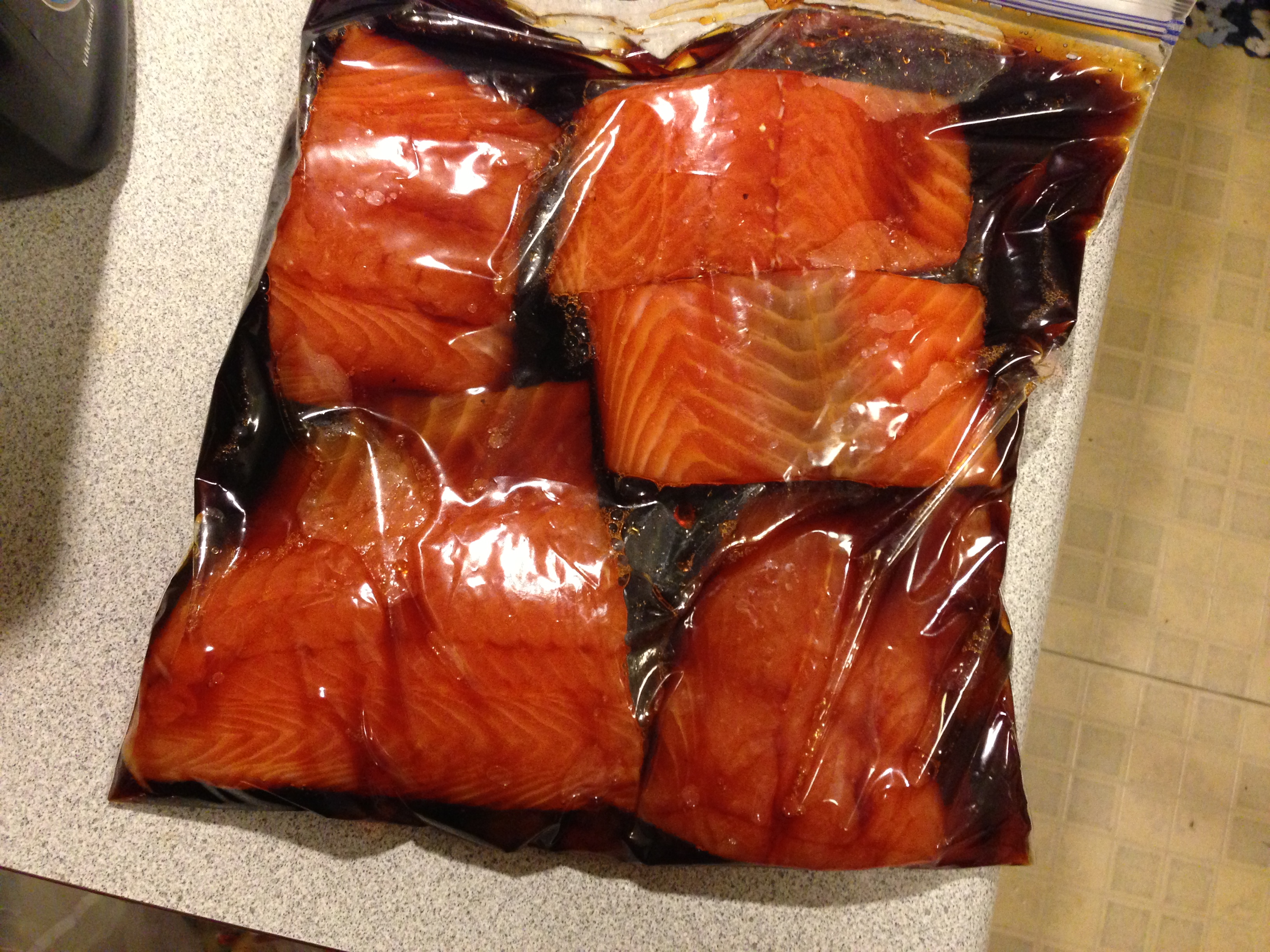 We had planned on baking the salmon the same night the marinade was created (which we usually do, marinating for 20 minutes or so,) but we were tired and not that hungry, so we bagged the salmon and called it a night. (Total marinade time: 23 hours)