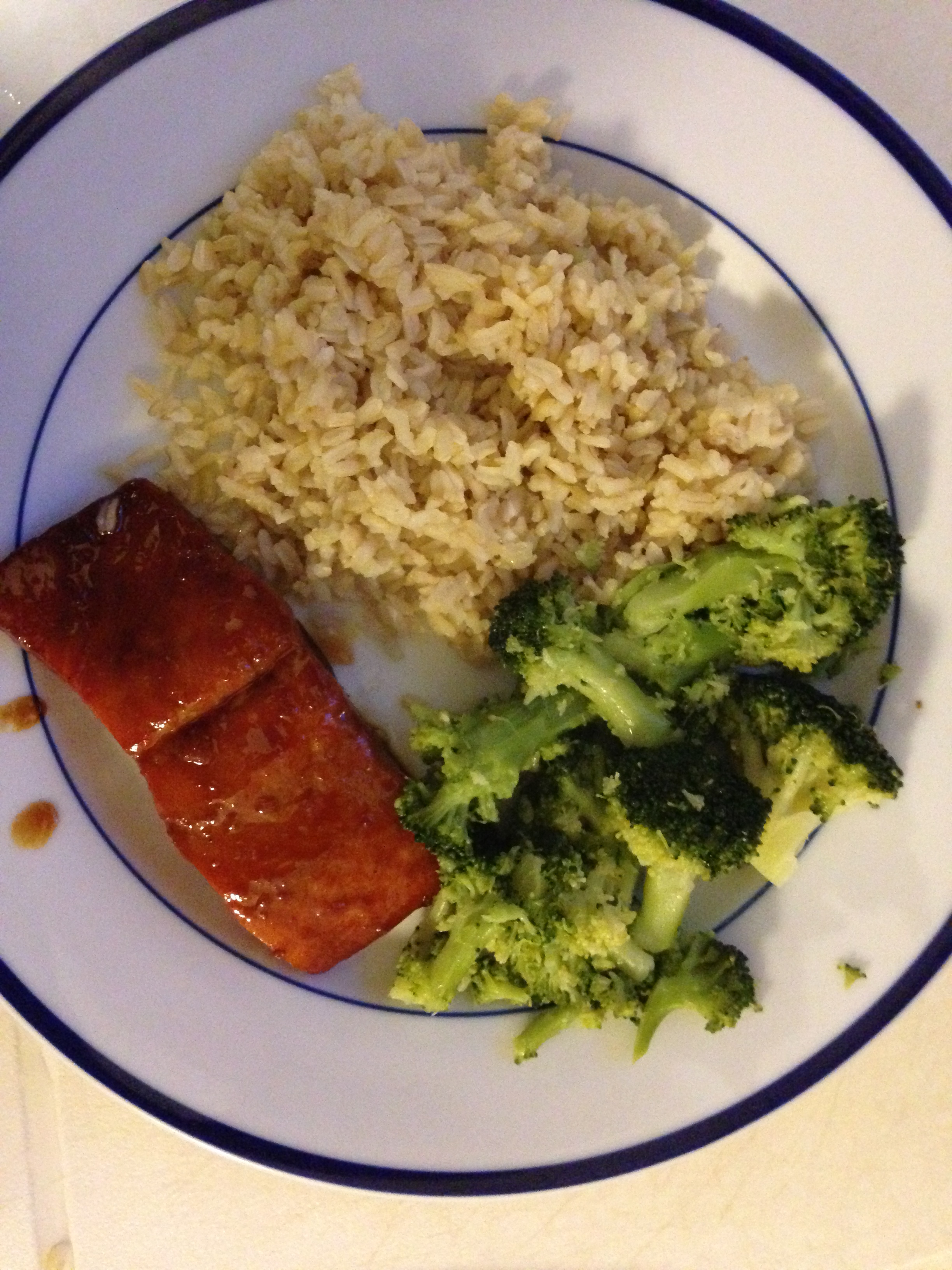 T outdid himself with dinner tonight – he marinated salmon overnight and poached/baked it to a tender and flaky perfection.