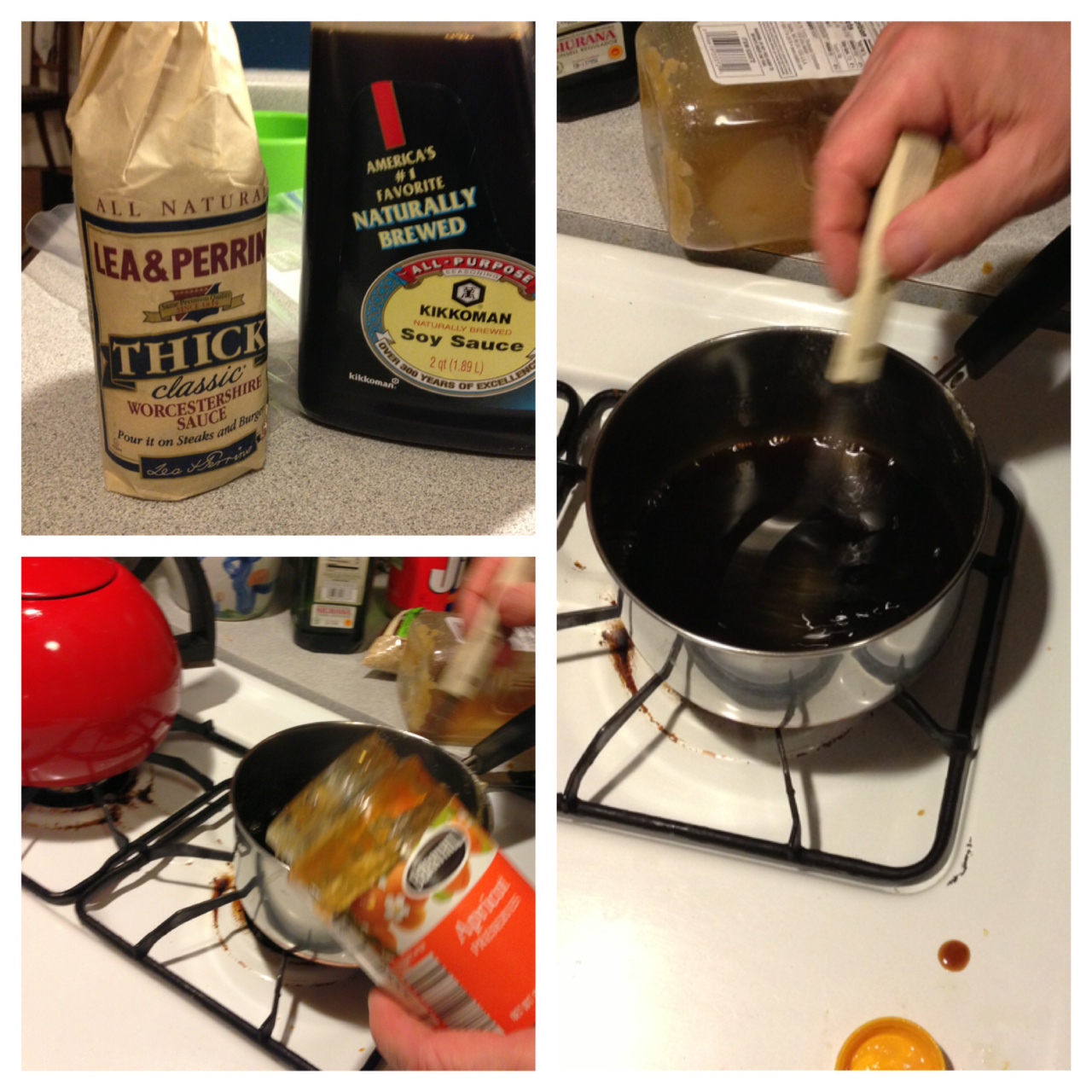 Combine all ingredients in saucepan over medium low heat, heating to incorporate honey and jam into other ingredients. Let cool.