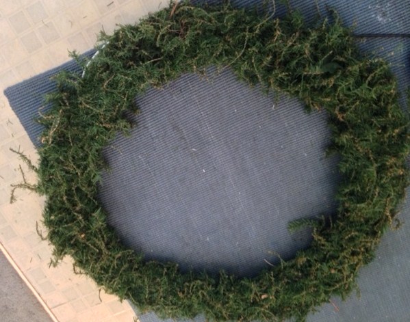 My goal for today was turn this forlorn relic from Christmas past into a Valentine’s Day-themed wall art. This took digging, wire clipping, de-twigging, defrosting, fluffing, relighting, rehanging, and finally decorating before I could say “Mission Accomplished”